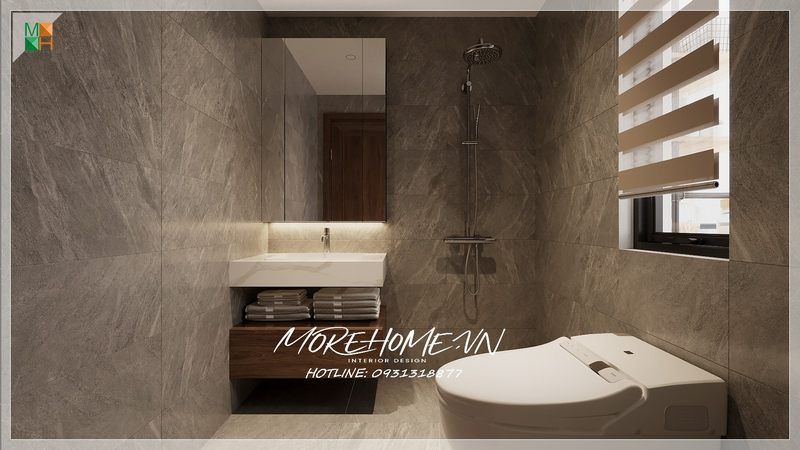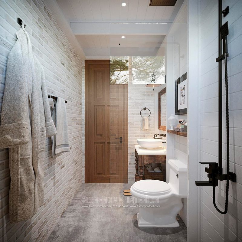 Phòng tắm với diện tích không được rộng trang trí với phong cách hiện đại nội thất nhỏ gọn đáp ứng đầy đủ tiện nghi nhu cầu sử dụng của gia chủ.