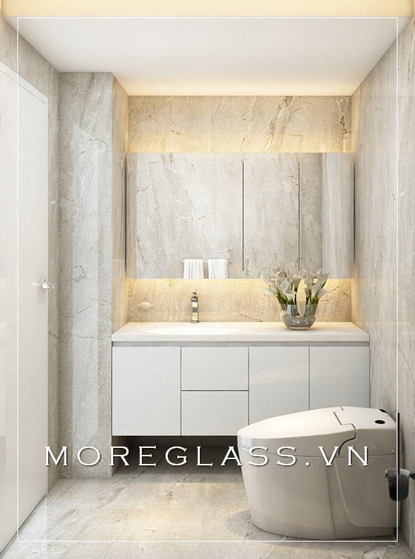Khi không gian nhà tắm hẹp, việc sử dụng gương có thể là một giải pháp thông minh và hiệu quả để tạo cảm giác rộng hơn. Hãy chọn những chiếc gương lớn, mặt kính phẳng và không có khung để tận dụng ánh sáng tự nhiên phản chiếu, từ đó mở rộng không gian trực tiếp và tạo ra ấn tượng của sự lớn hơn.