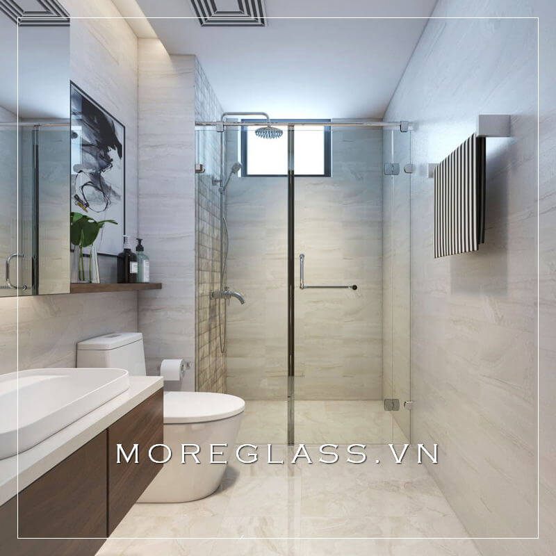 Mẫu thiết kế nhà vệ sinh và nhà tắm với gam màu trắng góp phần tạo nên không gian thoáng mát cho căn phòng.